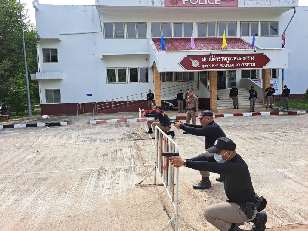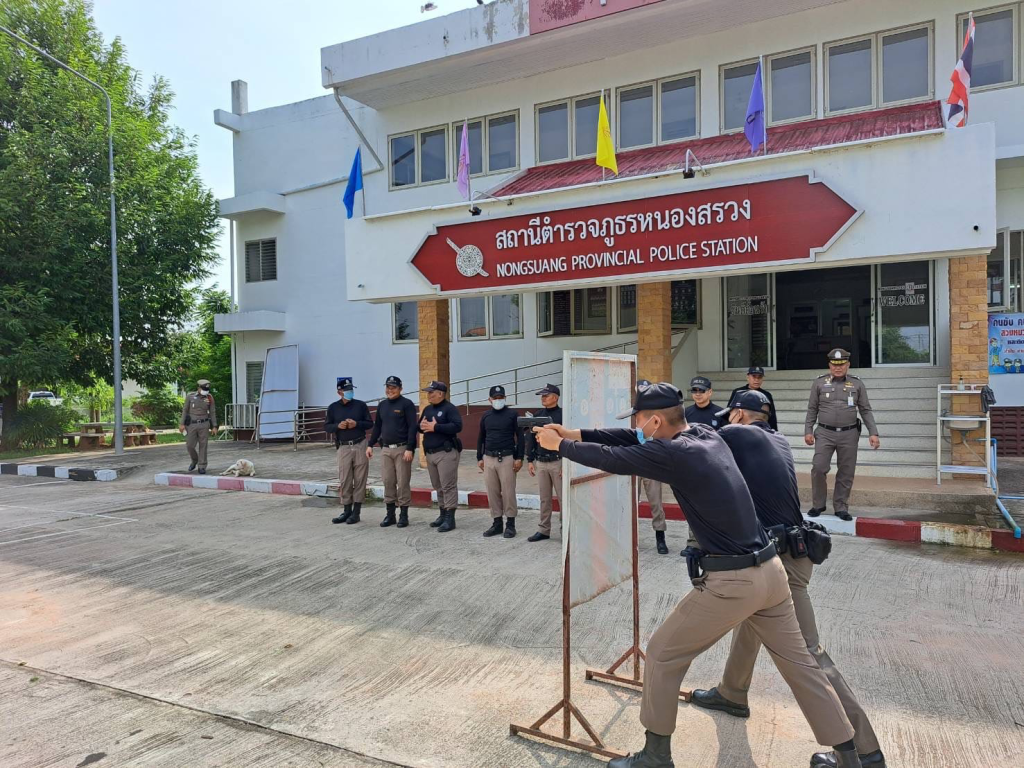 วันอังคาร ที่ 23 พ.ค. 2566 เวลา 09.00 น. พล.ต.ต.อิทธิพล นาคคำ ผบก.ภ.จว.นครราชสีมา ได้มาตรวจเยี่ยม สภ.หนองสรวง พบ พ.ต.ท.วิรัตน์ สมบัติ สว.สภ.หนองสรวง พร้อมข้าราชการตำรวจในสังกัดอยู่ปฏิบัติหน้าที่ โดยได้กำชับการปฏิบัติหน้าที่ตามนโยบายของผู้บังคับบัญชา พร้อมให้ขวัญกำลังใจแก่ผู้ใต้บังคับบัญชา และได้ตรวจดูการฝึกทักษะการยิงปืนทางยุทธวิธี โดยมี ร.ต.อ.วิโรจ สอดโคกสูง รอง สวป.ฯ และ ร.ต.อ.สุระ เมี้ยนกลาง รอง สว.สส.ฯ ซึ่งผ่านการฝึกอบรมครู ค.นำมาถ่ายทอดแก่ข้าราชการตำรวจในสังกัด